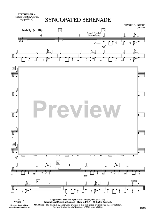 "Syncopated Serenade - Percussion 2" Sheet Music by Timothy Loest
