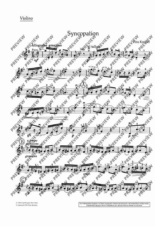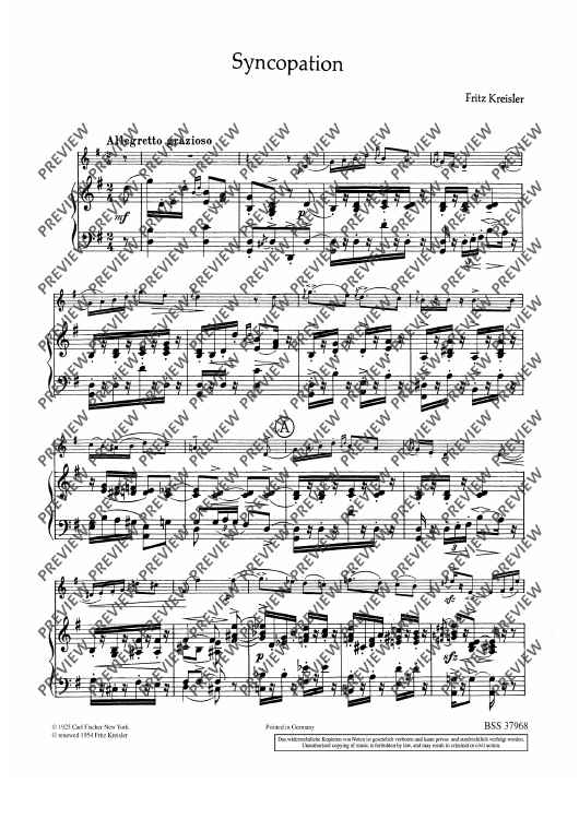 Digital Sheet Music for Syncopation by Fritz Kreisler scored for Violin And Piano; id:504908