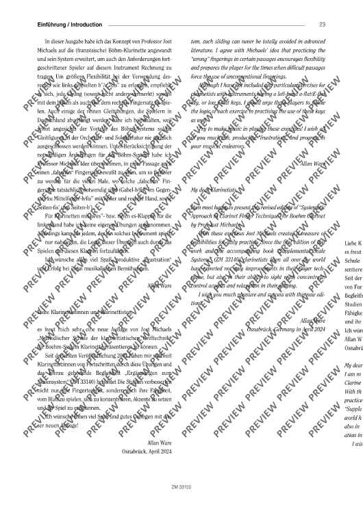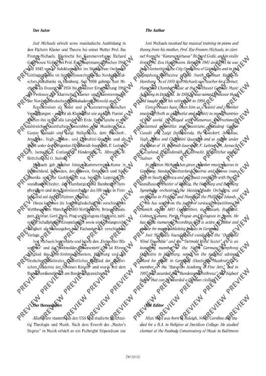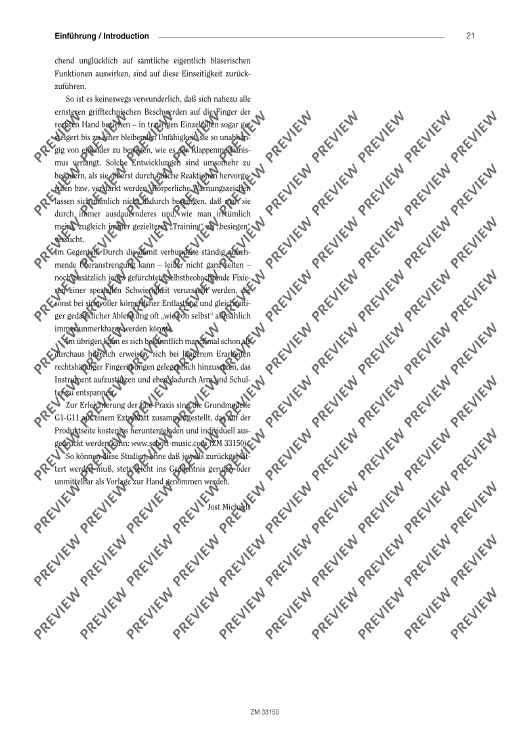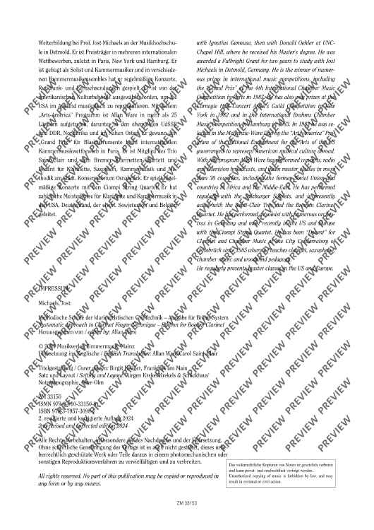 Jost Michaels (1922-2004), ehemaliger Professor für Klarinette an der Musikhochschule Detmold, legte in dieses Studienwerk seine jahrzehntelange pädagogische Erfahrung hinein. Die 18 Kapitel des Bandes werden durch ausführliche Anleitungstexte, eine Zusammenstellung der Fingerfunktionen beider Hände sowie eine herausnehmbare Übersicht über die der Methode zugrundeliegenden Basisübungen komplettiert.