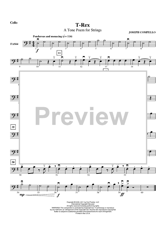 Digital Sheet Music for T-Rex - A Tone Poem for Strings - Cello by Joseph Compello scored for Orchestra; id:418988