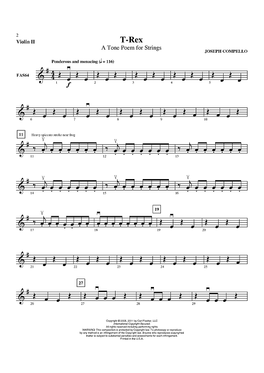 Digital Sheet Music for T-Rex - A Tone Poem for Strings - Violin 2 by Joseph Compello scored for Orchestra; id:418985