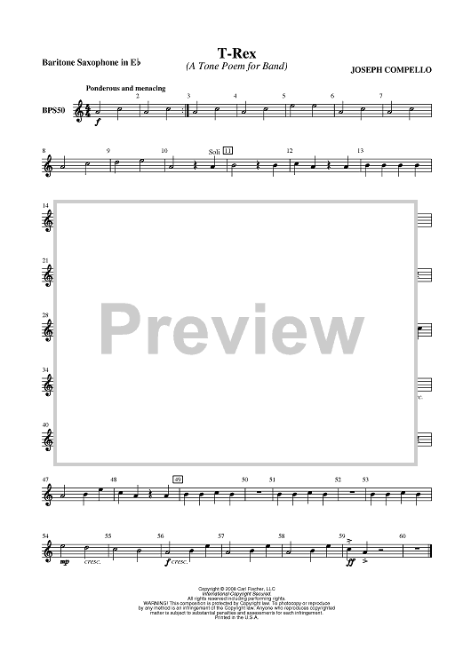 Digital Sheet Music for T-Rex - Baritone Sax by Joseph Compello scored for Concert Band; id:408842