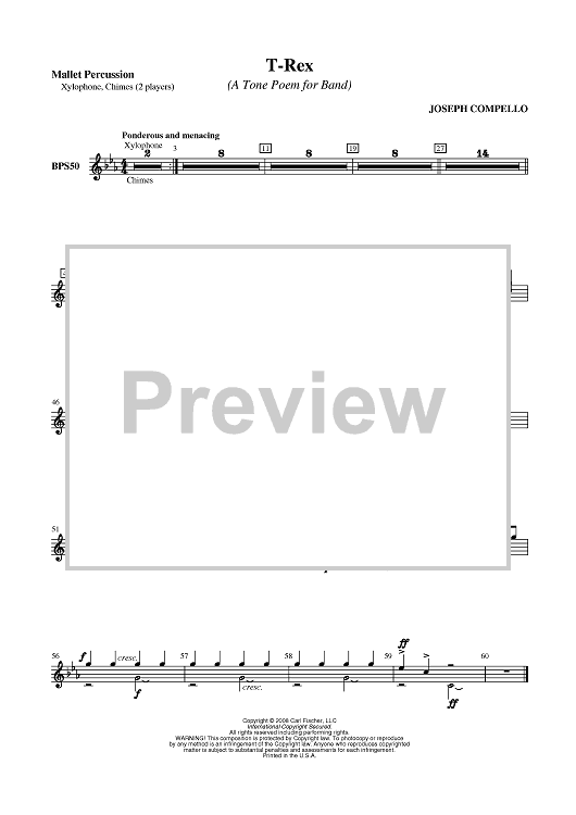 Digital Sheet Music for T-Rex - Mallet Percussion by Joseph Compello scored for Concert Band; id:408848