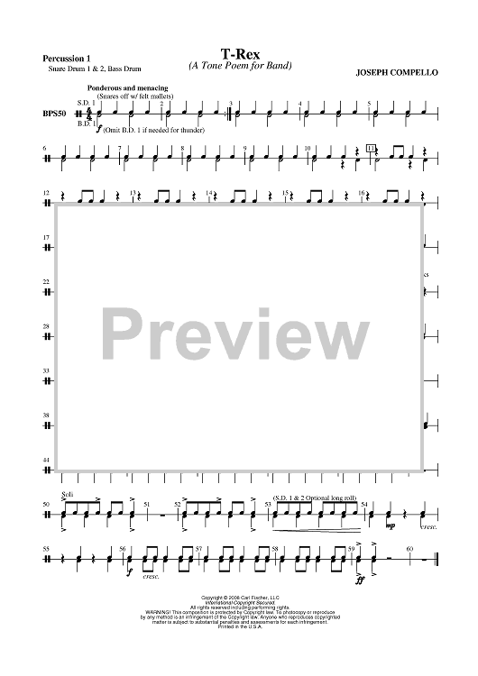 Digital Sheet Music for T-Rex - Percussion 1 by Joseph Compello scored for Concert Band; id:408850