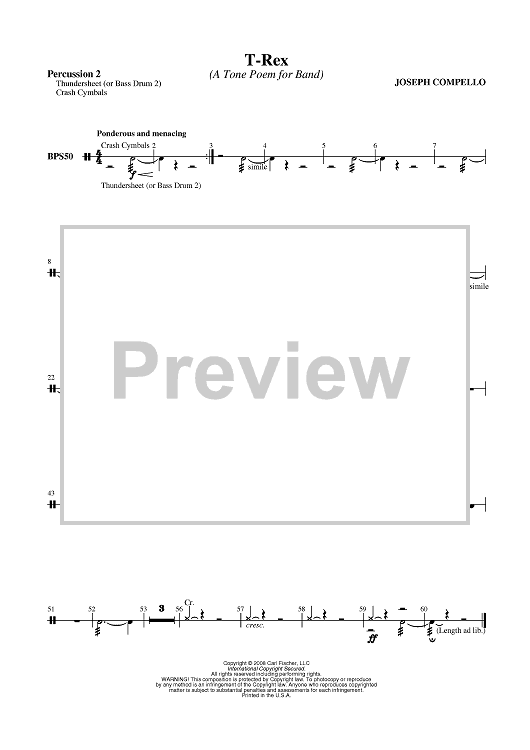 Digital Sheet Music for T-Rex - Percussion 2 by Joseph Compello scored for Concert Band; id:408851
