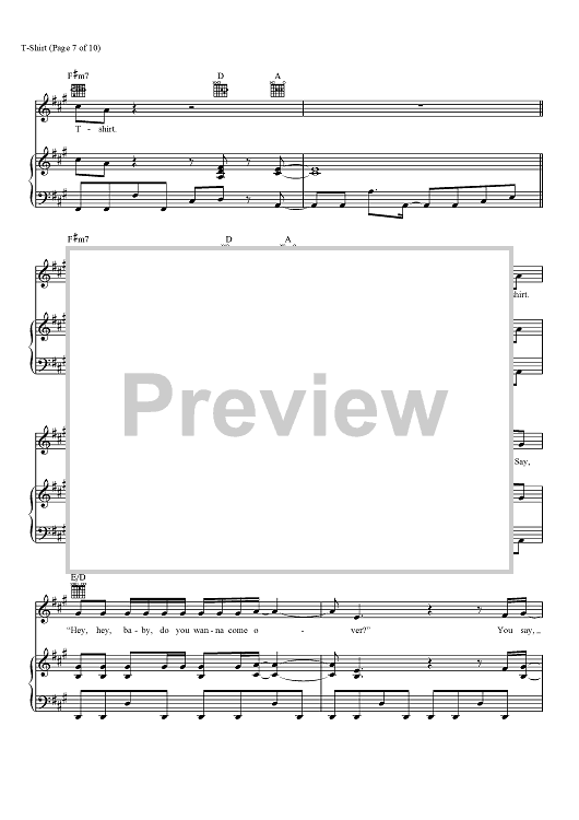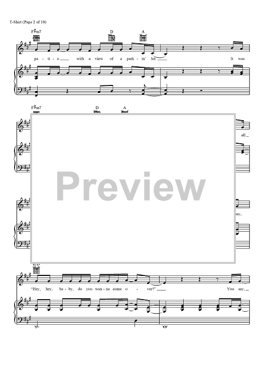 Digital Sheet Music for T-Shirt by Shane McAnally, Ashley Gorley, Luke Laird, Thomas Rhett scored for Piano/Vocal/Chords; id:457758