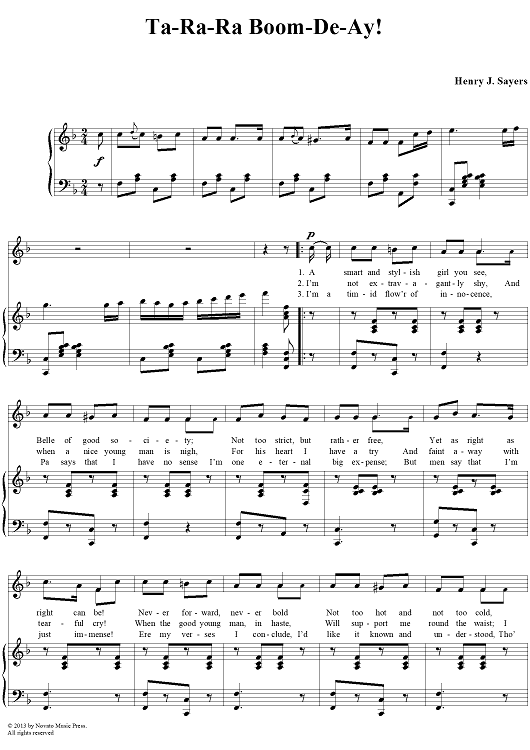 Digital Sheet Music for Ta-Ra-Ra Boom-De-Ay! by Henry J. Sayers scored for Piano/Vocal; id:117725