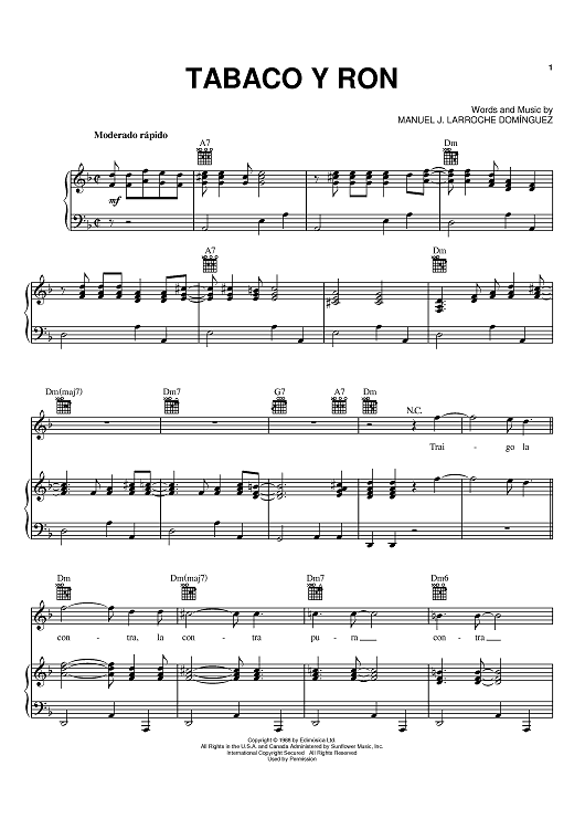 Digital Sheet Music for Tabaco Y Ron by Manuel J. Larroche Dominguez scored for Piano/Vocal/Chords; id:370572