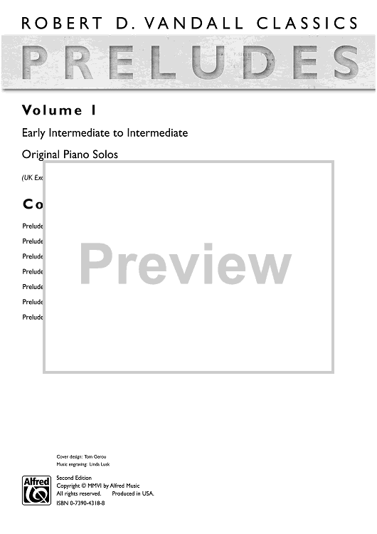 "Table of Contents - Bonus Material" Sheet Music by Robert D. Vandall