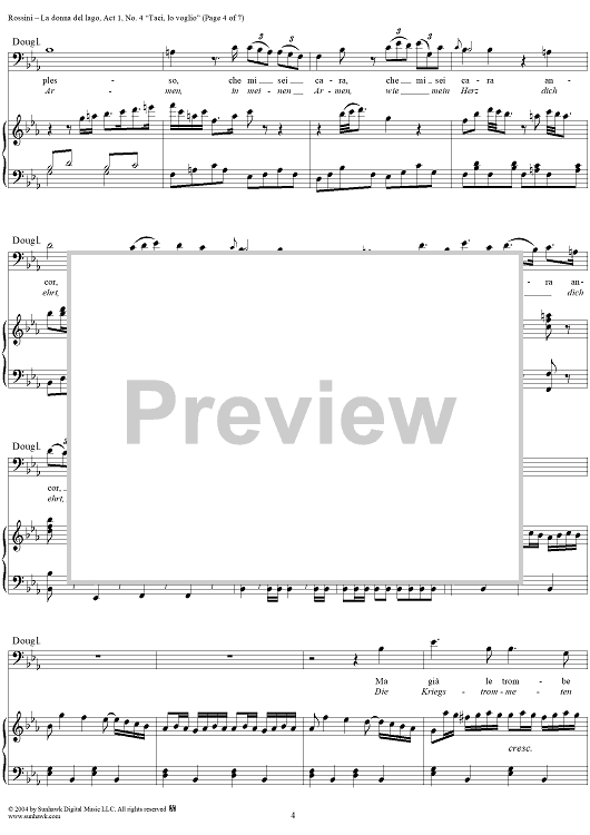 Digital Sheet Music for Taci, lo voglio: No. 4 from "La donna del lago", Act 1 - Score by Gioachino Rossini scored for Voice/Piano; id:303414