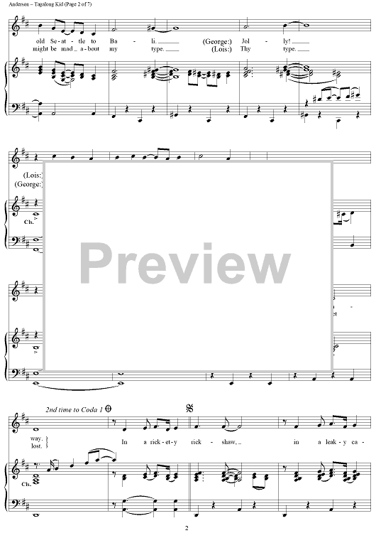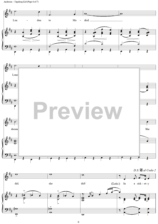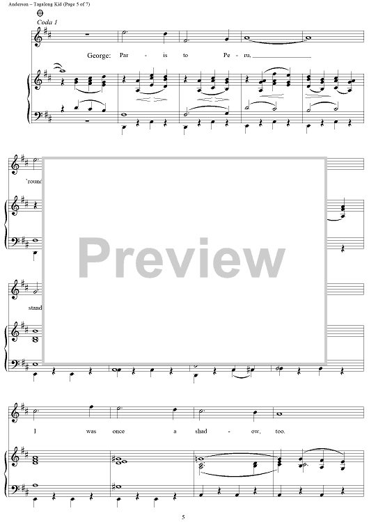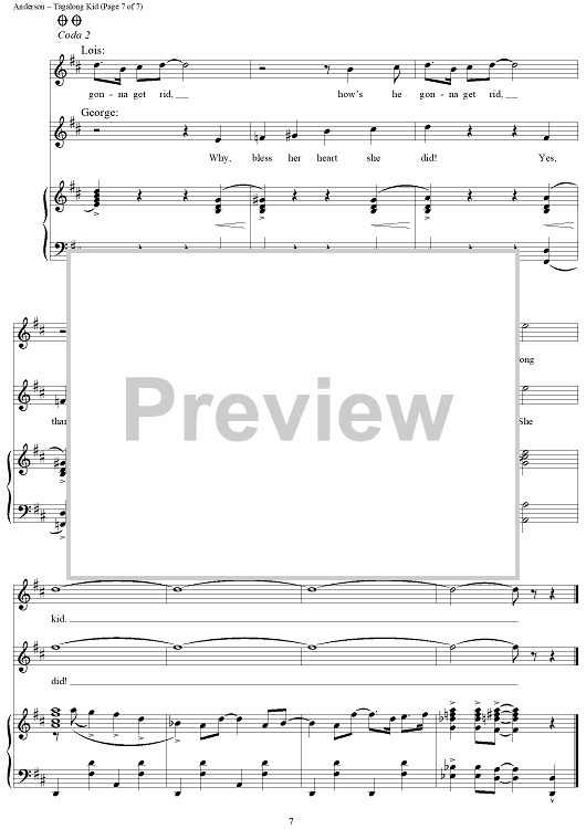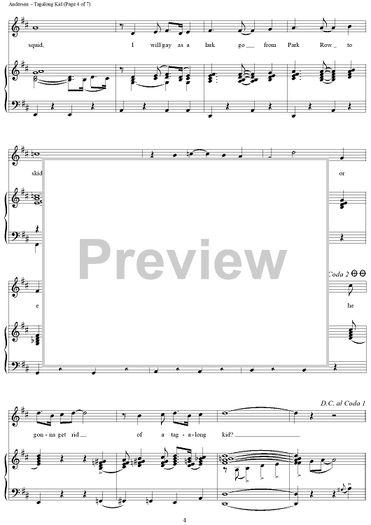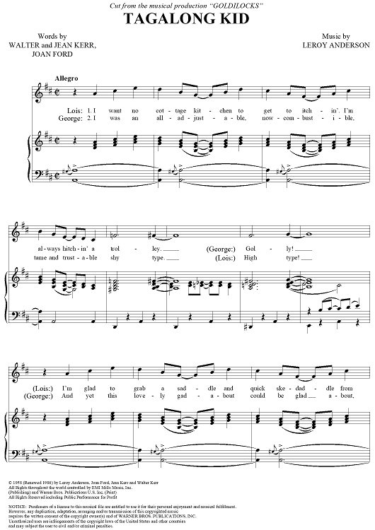 Digital Sheet Music for Tagalong Kid by Leroy Anderson, Walter Kerr, Jean Kerr, Joan Ford scored for Piano/Vocal; id:184008