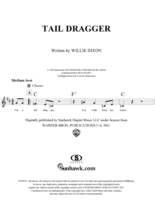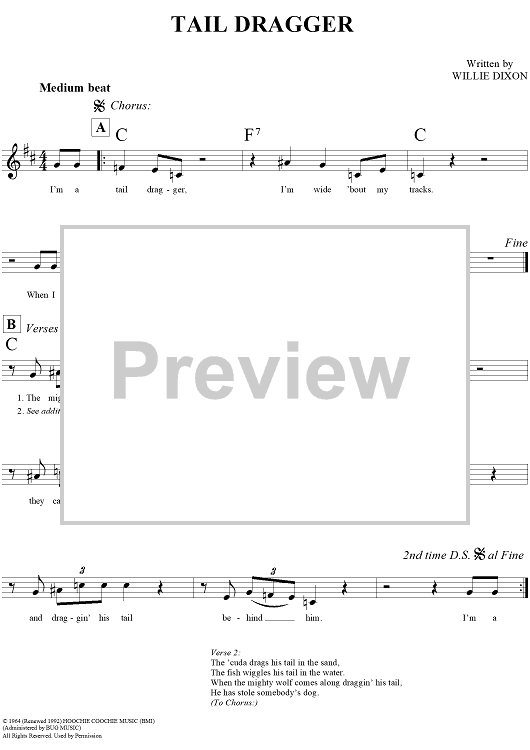 Digital Sheet Music for Tail Dragger by Willie Dixon scored for Lead Sheet; id:291747