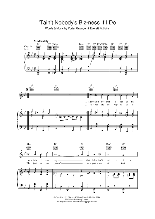 Digital Sheet Music for Tain't Nobody's Biz-Ness If I Do by Porter Grainger, Everett Robbins scored for Piano/Vocal/Chords; id:392646