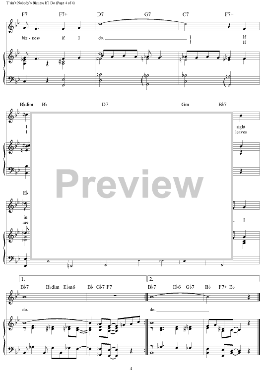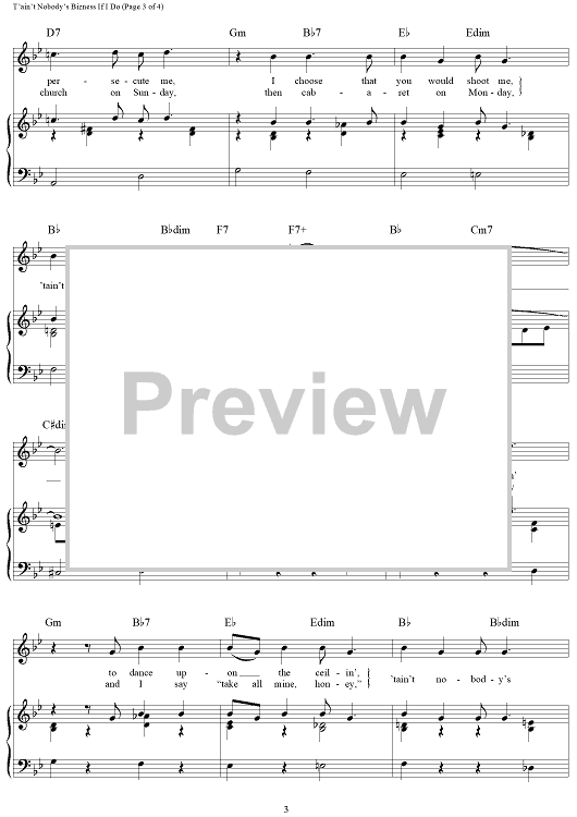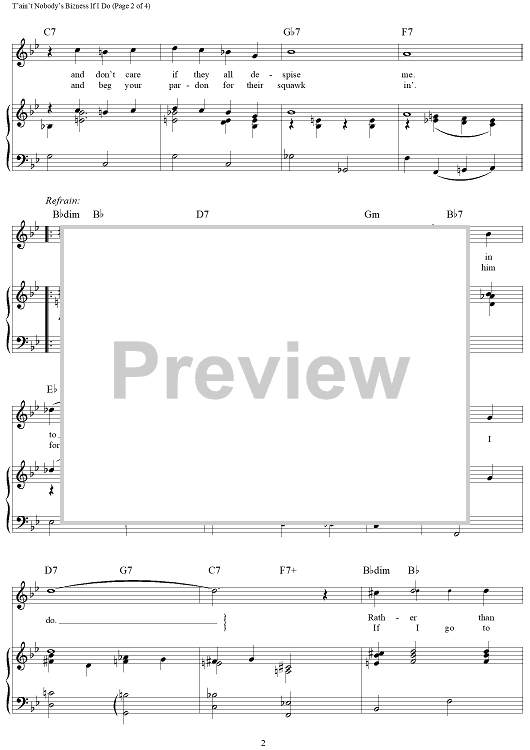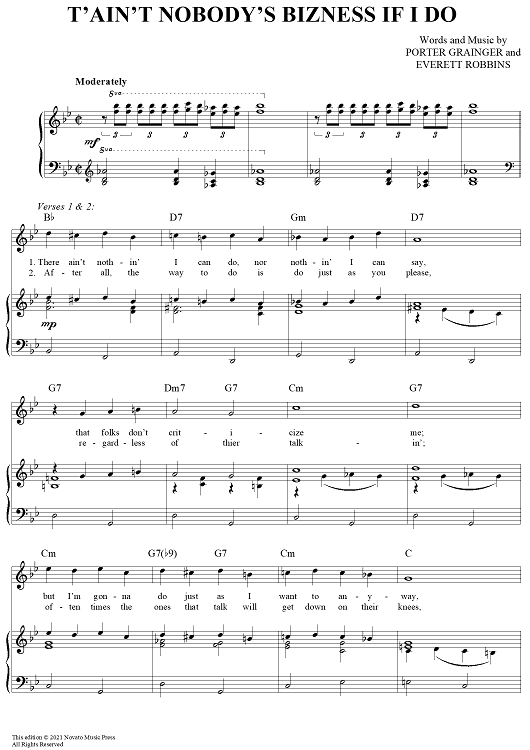 Digital Sheet Music for T'ain't Nobody's Bizness If I Do by Bessie Smith, Porter Grainger, Everett Robbins scored for Piano/Vocal/Chords; id:286509