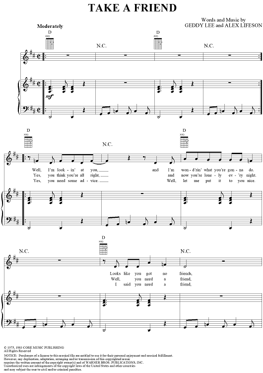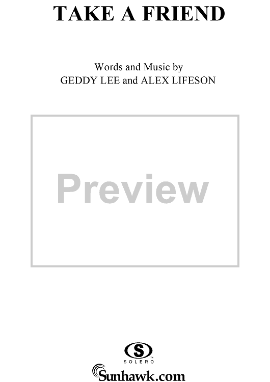 Digital Sheet Music for Take a Friend by Rush, Geddy Lee, Alex Lifeson scored for Piano/Vocal/Chords; id:124265