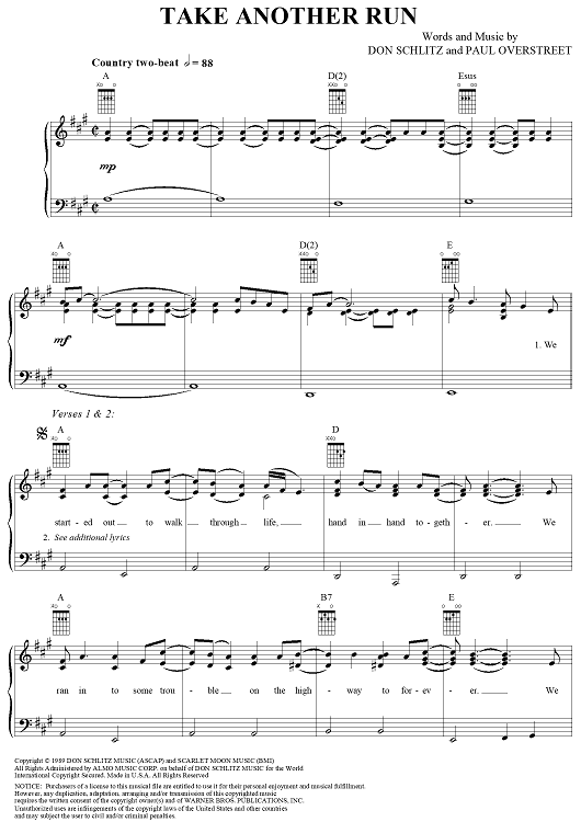 Digital Sheet Music for Take Another Run by Tanya Tucker, Don Schlitz, Paul Overstreet scored for Piano/Vocal/Chords; id:257725
