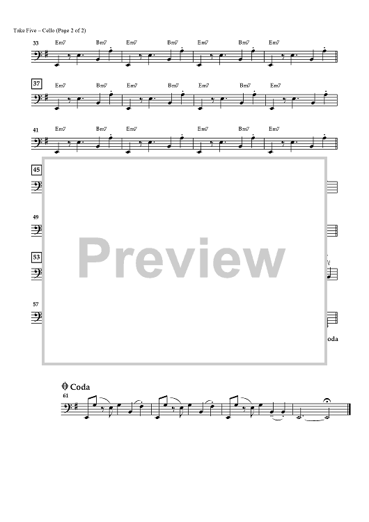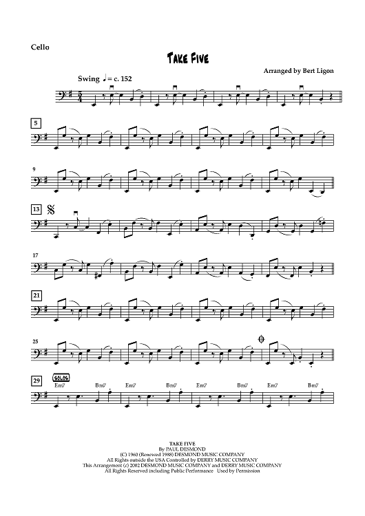 "Take Five - Cello" Sheet Music by Paul Desmond