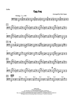 Digital Sheet Music for Take Five - Cello by Paul Desmond, Bert Ligon scored for String Quartet; id:462930