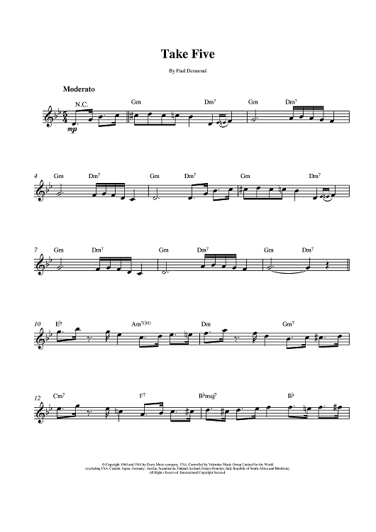 Digital Sheet Music for Take Five by Paul Desmond, Dave Brubeck scored for Lead Sheet; id:380651