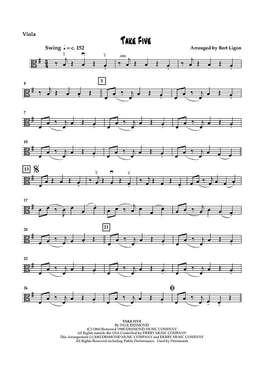 "Take Five - Viola" Sheet Music by Paul Desmond
