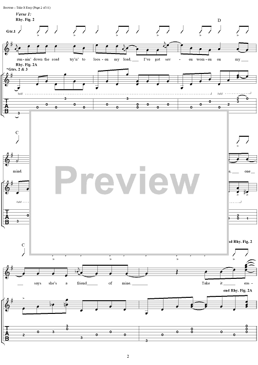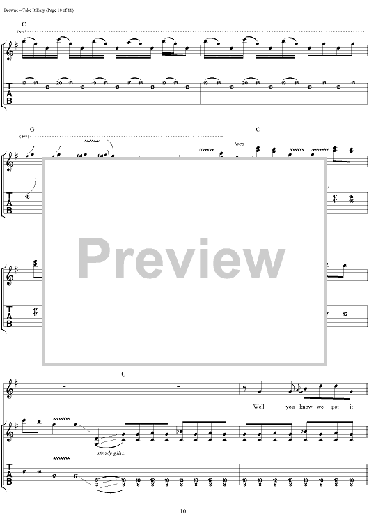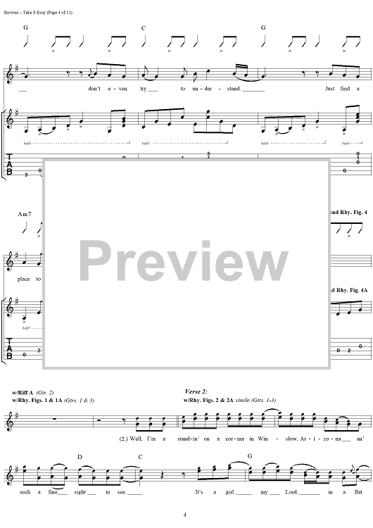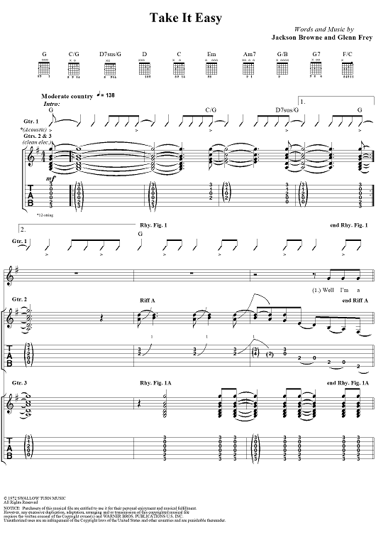"Take It Easy" Sheet Music by Eagles