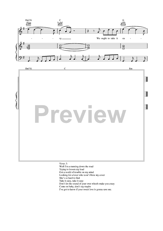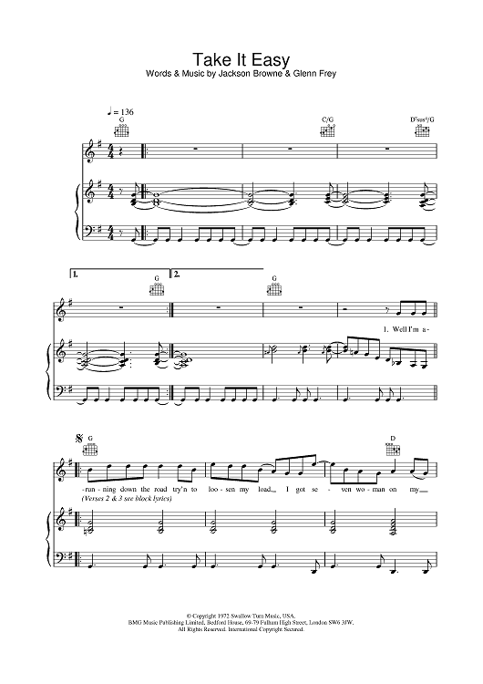 Digital Sheet Music for Take It Easy by Jackson Browne, Glenn Frey, Eagles scored for Piano/Vocal/Chords; id:382691