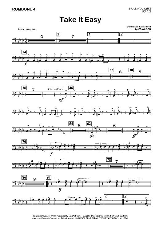 "Take It Easy - Trombone 4" Sheet Music by Ed Wilson