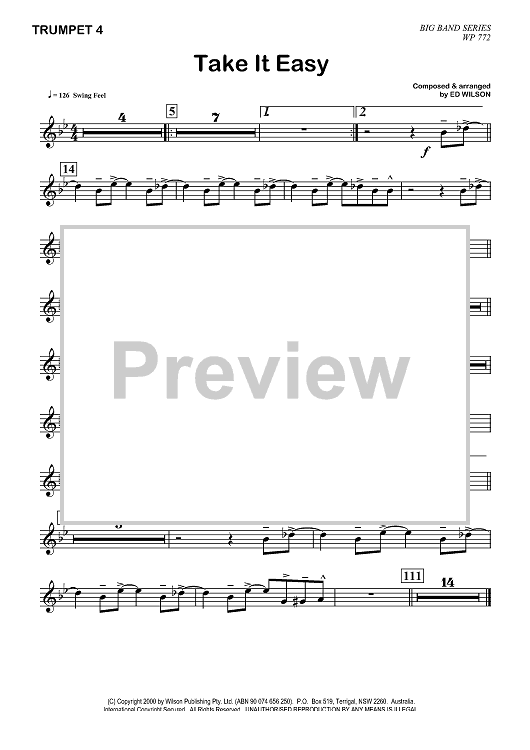 "Take It Easy - Trumpet 4" Sheet Music by Ed Wilson