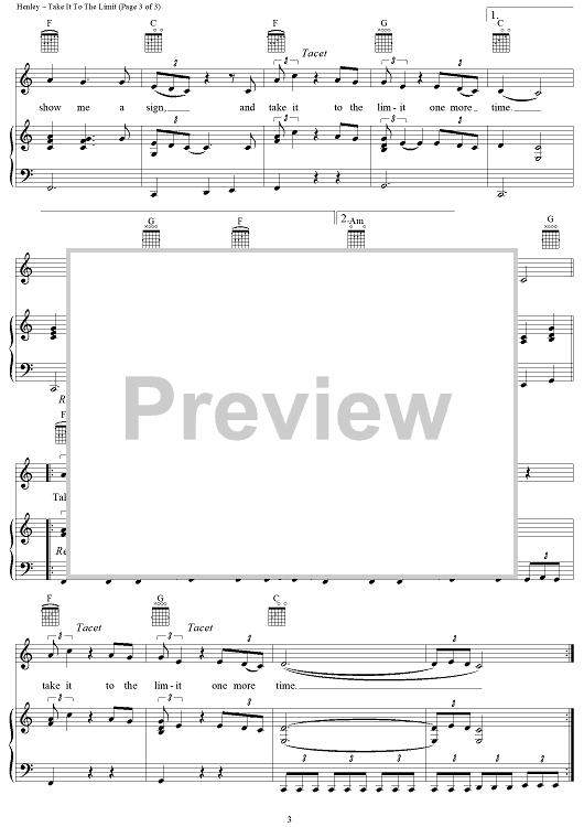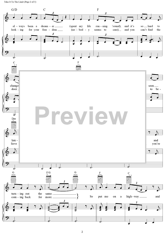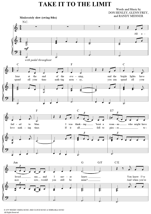 Digital Sheet Music for Take It To The Limit by Don Henley, Randy Meisner, Glenn Frey, Eagles scored for Piano/Vocal/Chords; id:110831