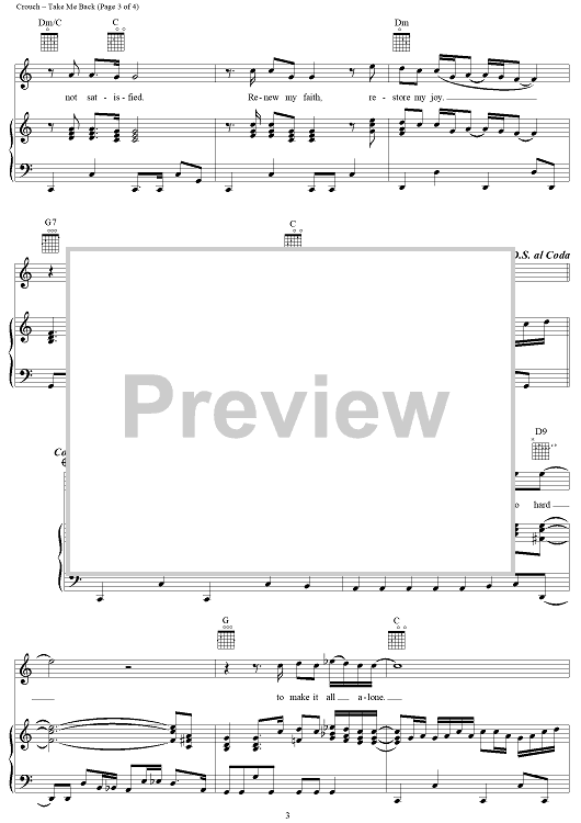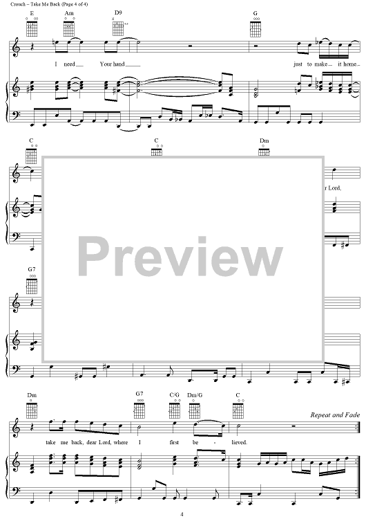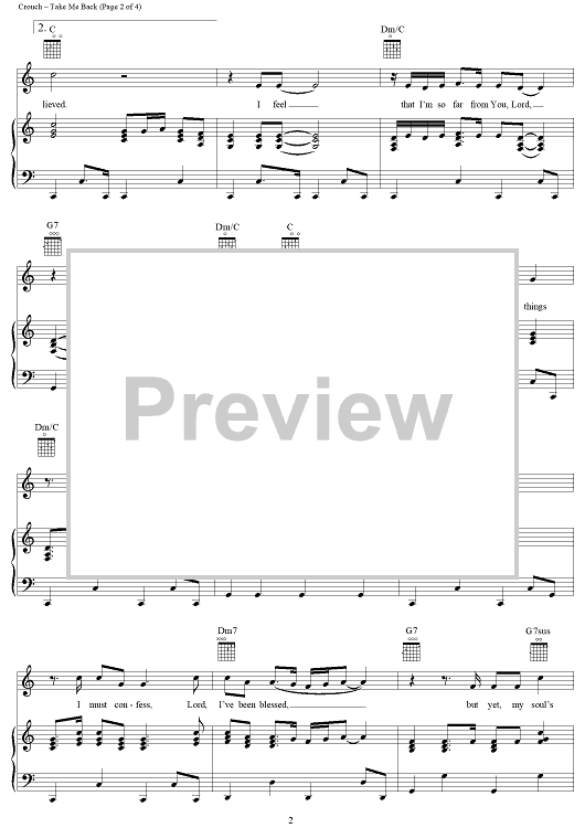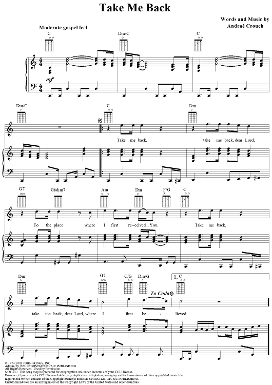 Digital Sheet Music for Take Me Back by Andrae Crouch scored for Piano/Vocal/Chords; id:111880