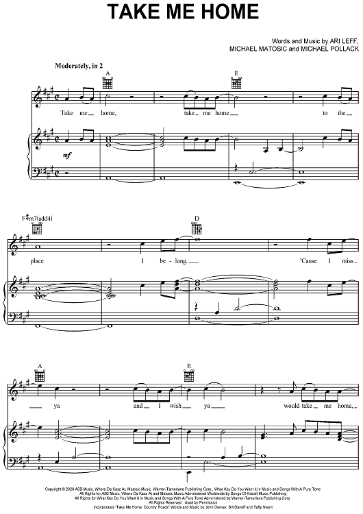Digital Sheet Music for Take Me Home by Michael Pollack, Ari Leff, Kane Brown, Michael Matosic, Restless Road scored for Piano/Chords; id:468345