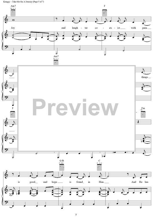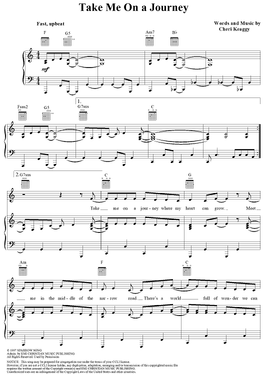 Digital Sheet Music for Take Me On A Journey by Cheri Keaggy scored for Piano/Vocal/Chords; id:250142