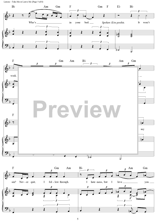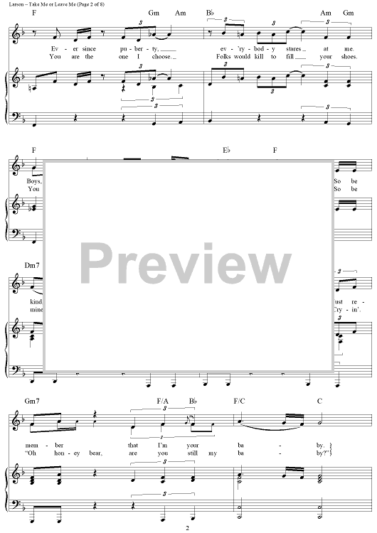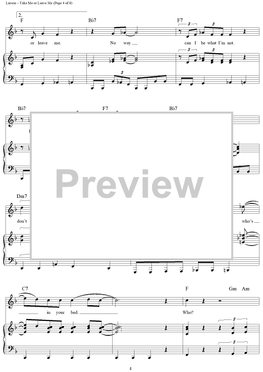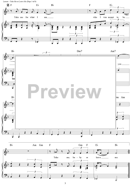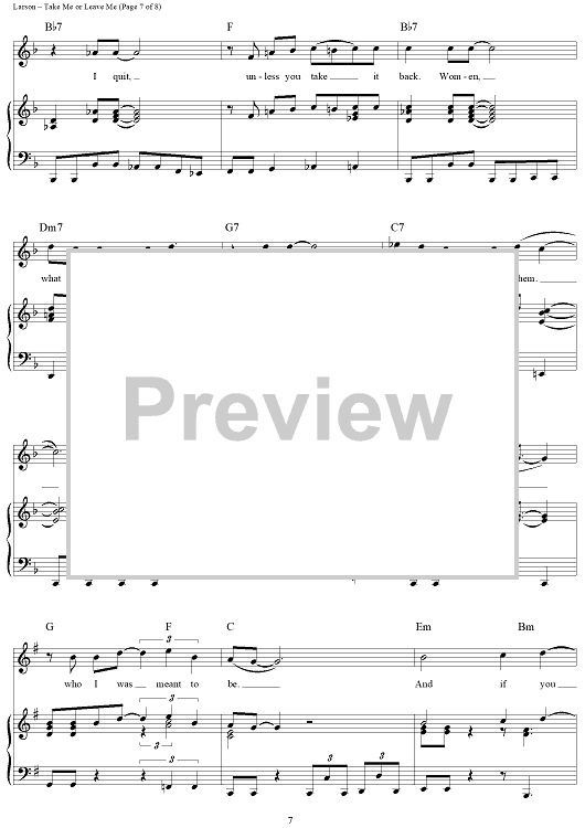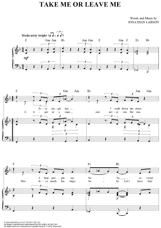 Digital Sheet Music for Take Me or Leave Me by Jonathan Larson scored for Piano/Vocal/Chords; id:362986