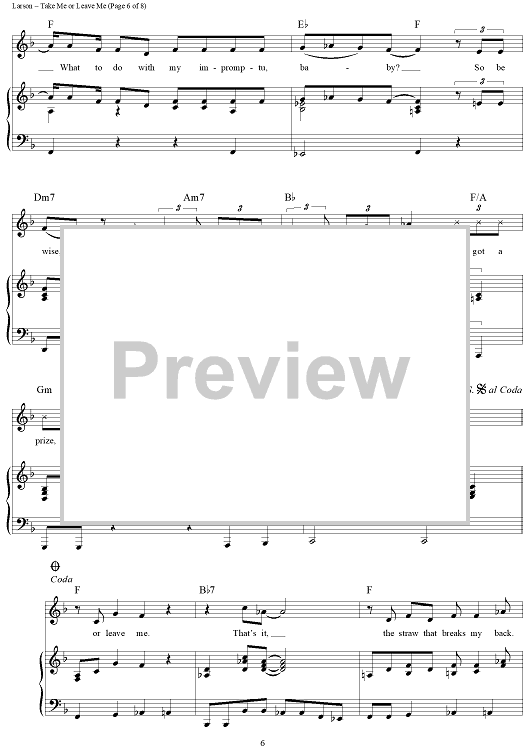 "Take Me or Leave Me" Sheet Music by Jonathan Larson