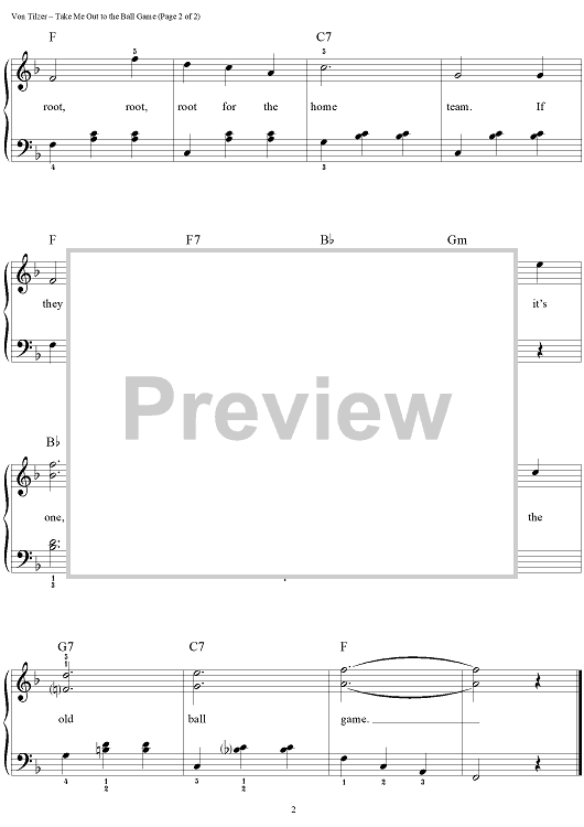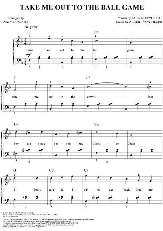 Digital Sheet Music for Take Me Out To The Ball Game by Jack Norworth, Albert von Tilzer, John Brimhall scored for Easy Piano/Vocal; id:241846