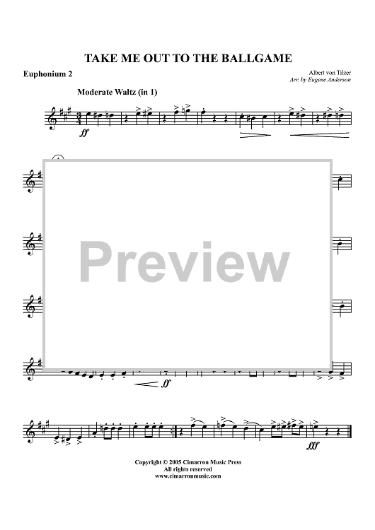 "Take Me Out To The Ballgame - Euphonium 2 BC/TC" Sheet Music by Albert von Tilzer