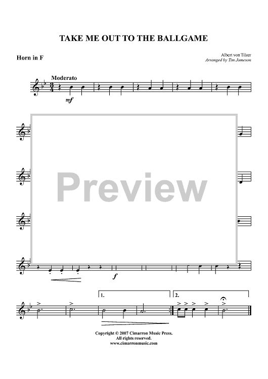 "Take Me Out to the Ballgame - Horn in F" Sheet Music by Albert von Tilzer