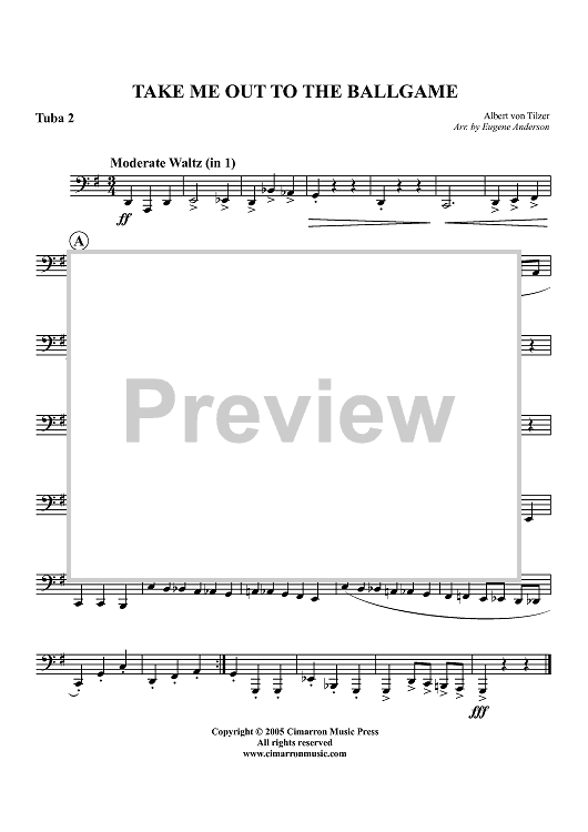 "Take Me Out To The Ballgame - Tuba 2" Sheet Music by Albert von Tilzer