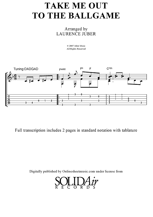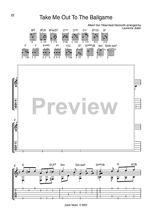 Digital Sheet Music for Take Me Out To The Ballgame (With Embedded Audio) by , Albert von Tilzer, Laurence Juber scored for Guitar Tab; id:453985