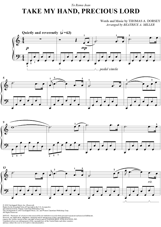Digital Sheet Music for Take My Hand, Precious Lord by Beatrice A. Miller, Thomas A. Dorsey scored for Easy Piano; id:294634