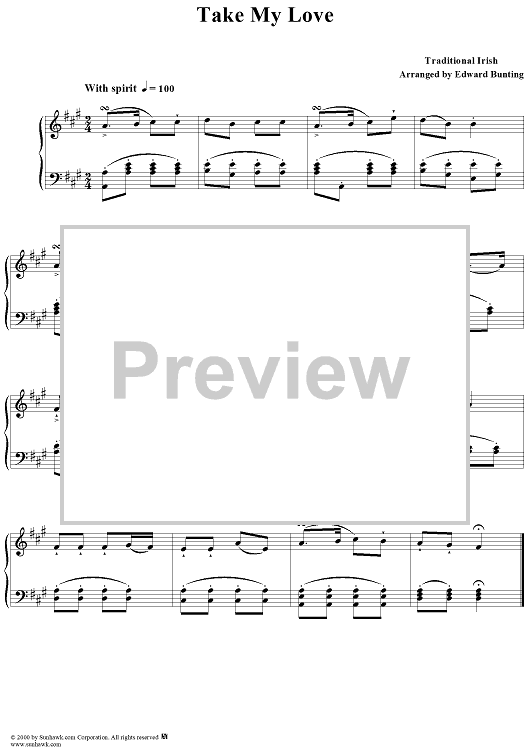 Digital Sheet Music for Take My Love by , Edward Bunting, Traditional scored for Piano Solo; id:240570