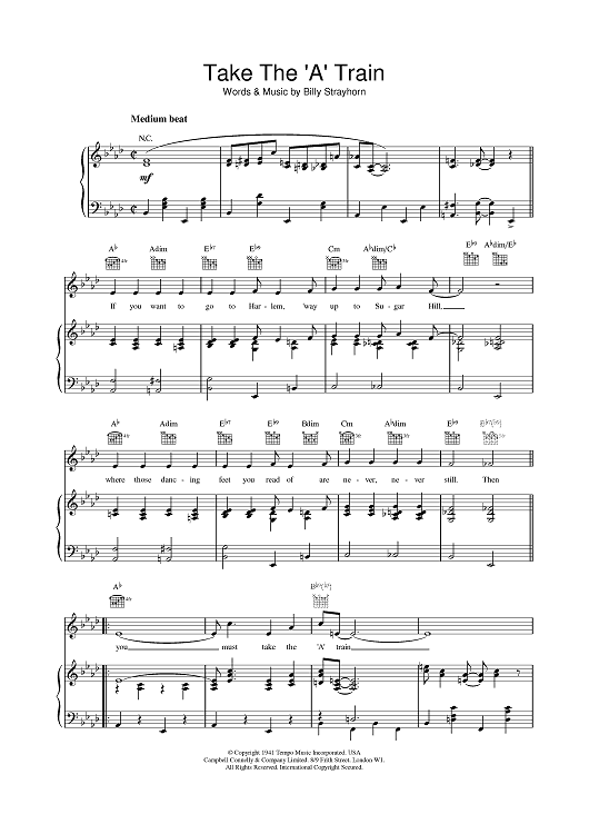 Digital Sheet Music for Take The 'A' Train by Billy Strayhorn scored for Piano/Vocal/Chords; id:376727