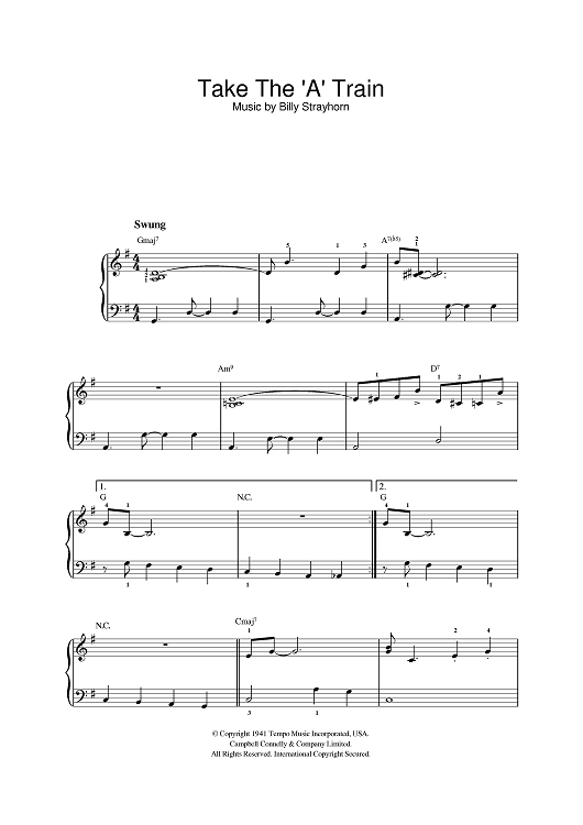 "Take The 'A' Train" Sheet Music by Billy Strayhorn
