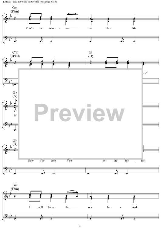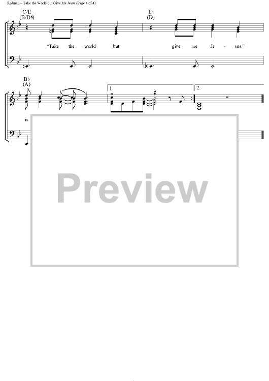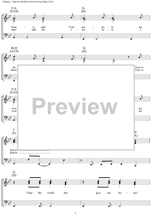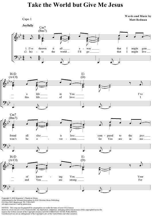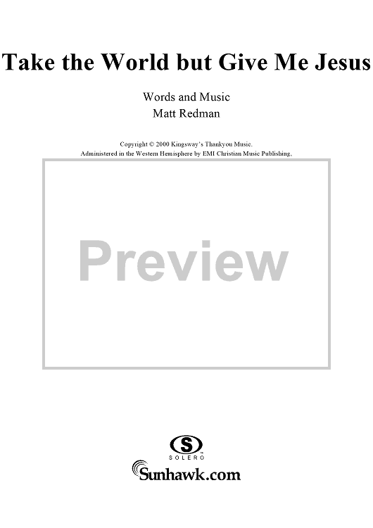 Digital Sheet Music for Take The World But Give Me Jesus by Matt Redman scored for Piano/Vocal/Chords; id:220672
