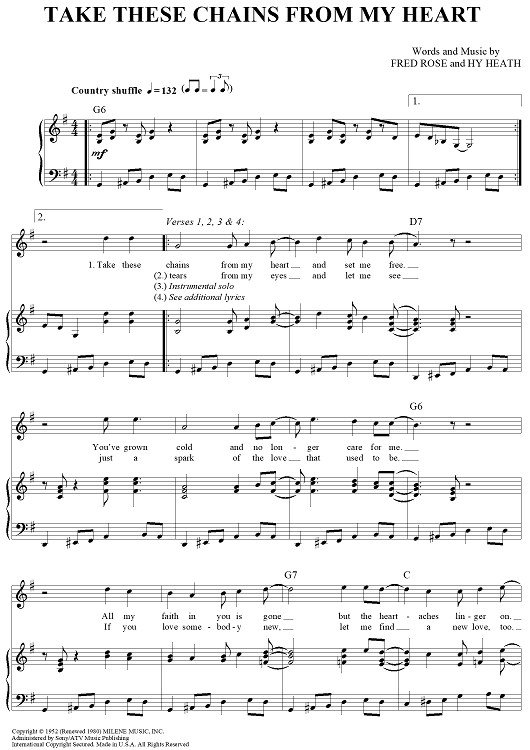 Digital Sheet Music for Take These Chains from My Heart by Fred Rose, Hy Heath, Lee Roy Parnell scored for Piano/Vocal/Chords; id:255991