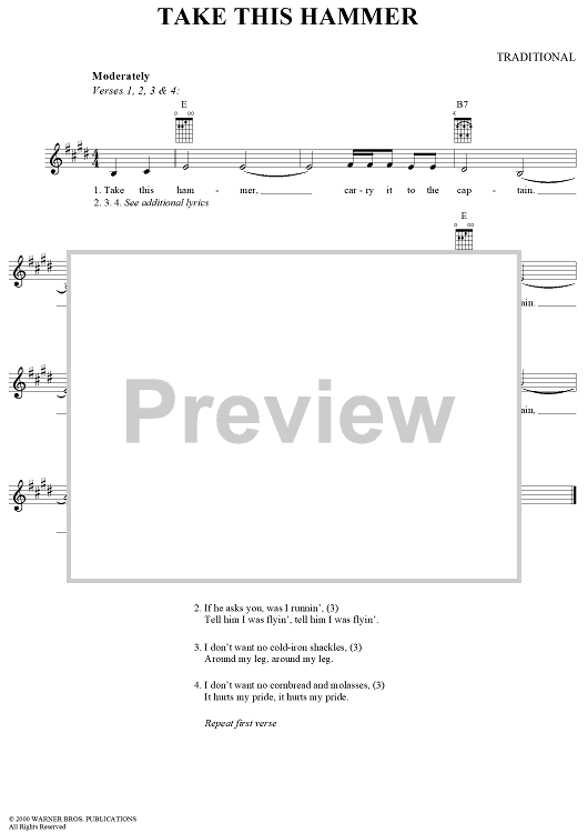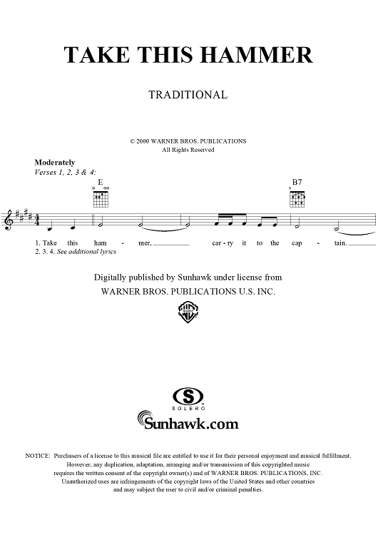 Digital Sheet Music for Take This Hammer by Traditional scored for Lead Sheet; id:292718