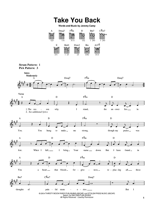 Digital Sheet Music for Take You Back by Jeremy Camp scored for Easy Guitar; id:398245