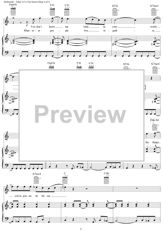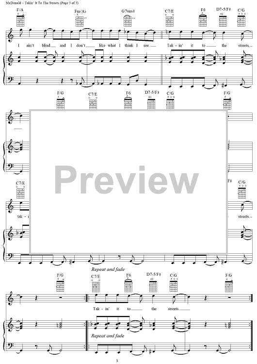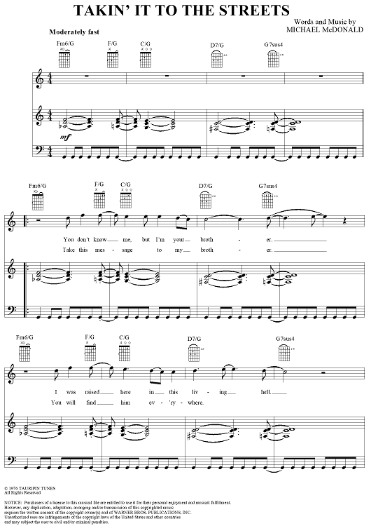 Digital Sheet Music for Takin' It To The Streets by Michael McDonald, The Doobie Brothers scored for Piano/Vocal/Chords; id:110832