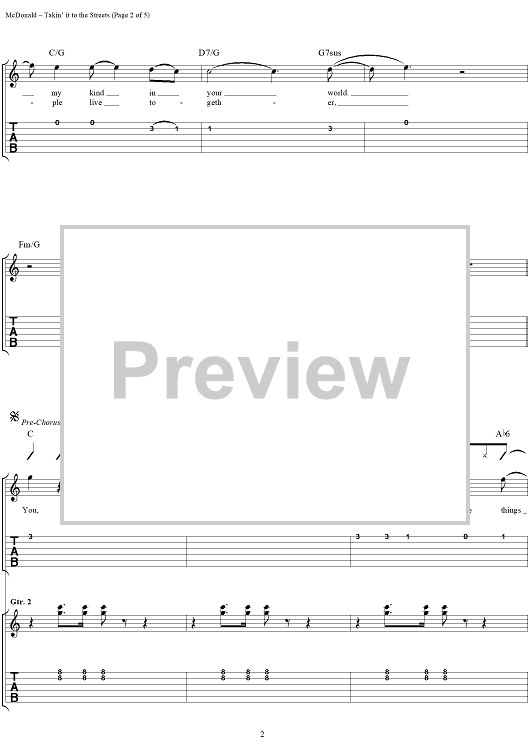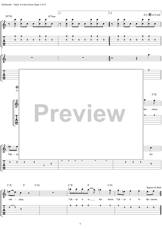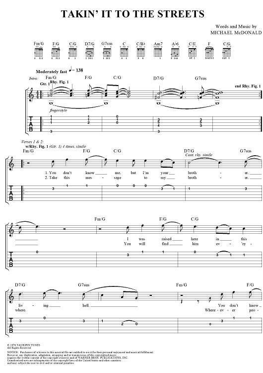 "Takin' It To The Streets" Sheet Music by The Doobie Brothers