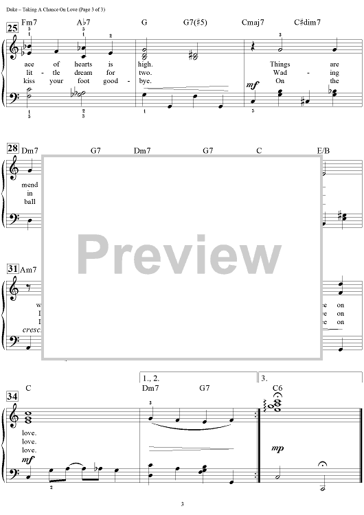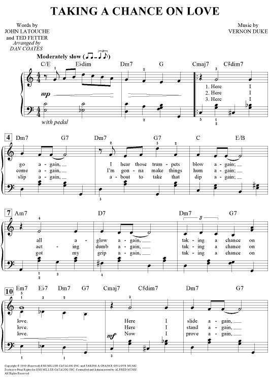 Digital Sheet Music for Taking a Chance on Love by Dan Coates, Vernon Duke, John La Touche, Ted Fetter scored for Easy Piano/Vocal/Chords; id:451977